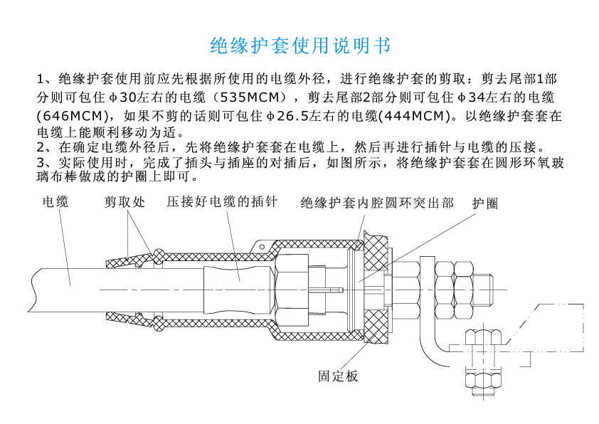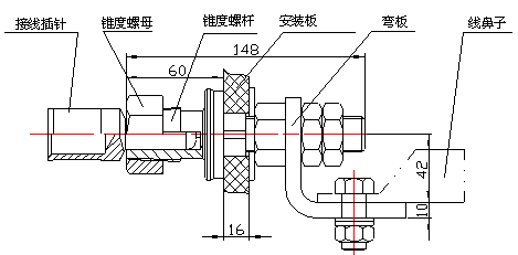 ,插孔為一錐度螺桿,需安裝固定在厚度16mm的環(huán)氧玻璃布上,穩(wěn)定牢固,絕緣,與電纜采用壓接形式,接觸性好。